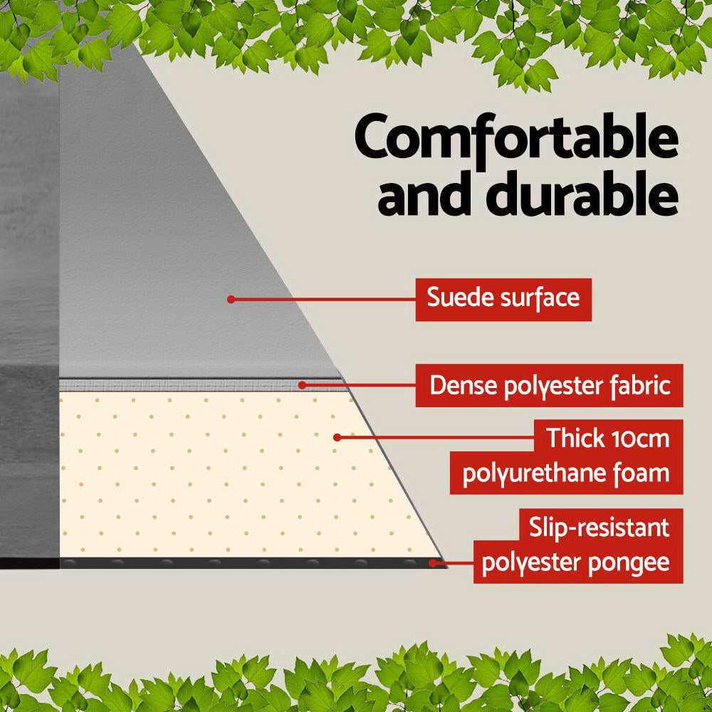 As the name says it all, the water-resistant Mat self-inflates through built-in valves in just 60 seconds, presenting you with a smooth suede sleeping surface amidst all types of terrain almost instantly. Made from high density 10cm thick polyurethane foam, the Mat is wrapped with a faux suede surface top and anti-slip polyester pongee bottom. That way, you lie on a smooth and comfortable surface with a mat that does not slip or move with your every turn while sleeping or shifting around.