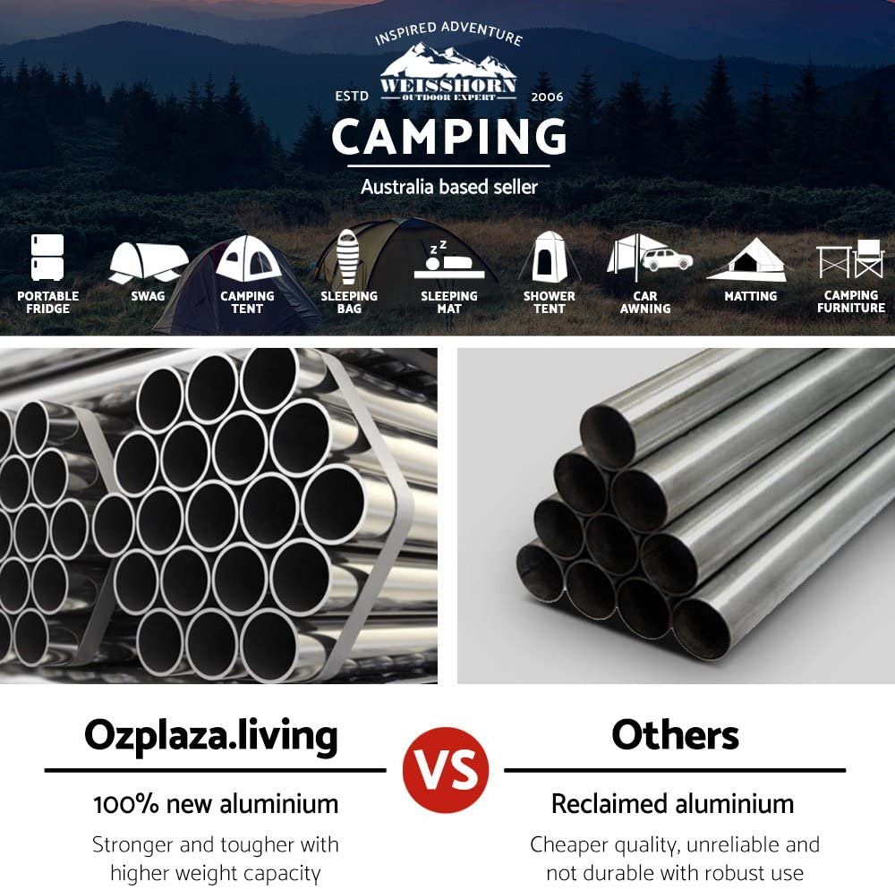 Made of strong aluminium throughout, the Camping Table can handle up to 40kg in weight with its rust-resistant MDF table top. The four integrated seats have a weight capacity of 100kg per seat, which makes the seats suitable for anyone to use. Not least, the rounded corners ensure the Camping Table is safe to use around kids and adults at all times.