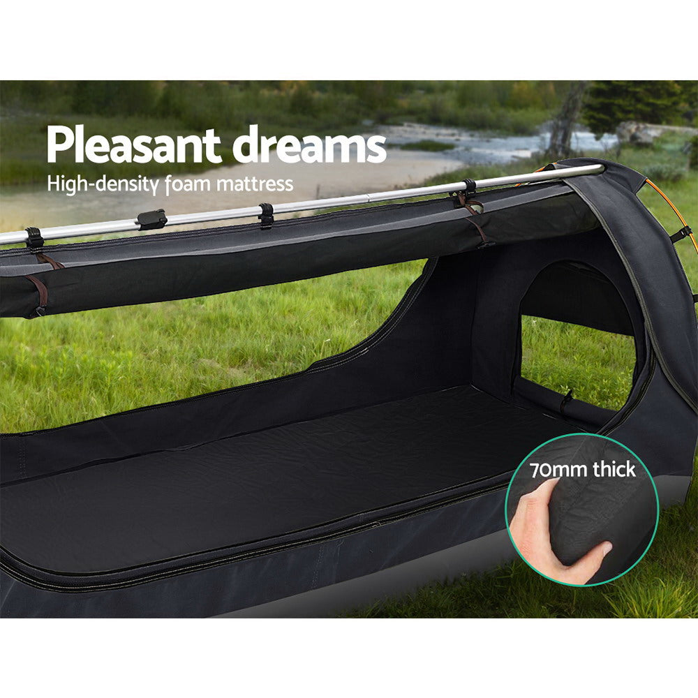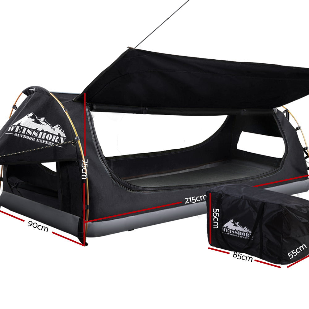 Weisshorn Swag King Single Camping Swags Canvas Free Standing Dome Tent Dark Grey with 7CM Mattress